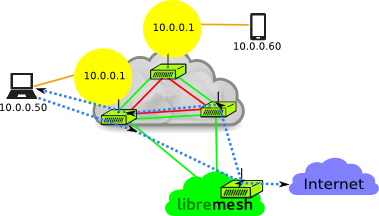 The cloud layer 2 uses the dynamic routing protocol BATMAN-adv.
